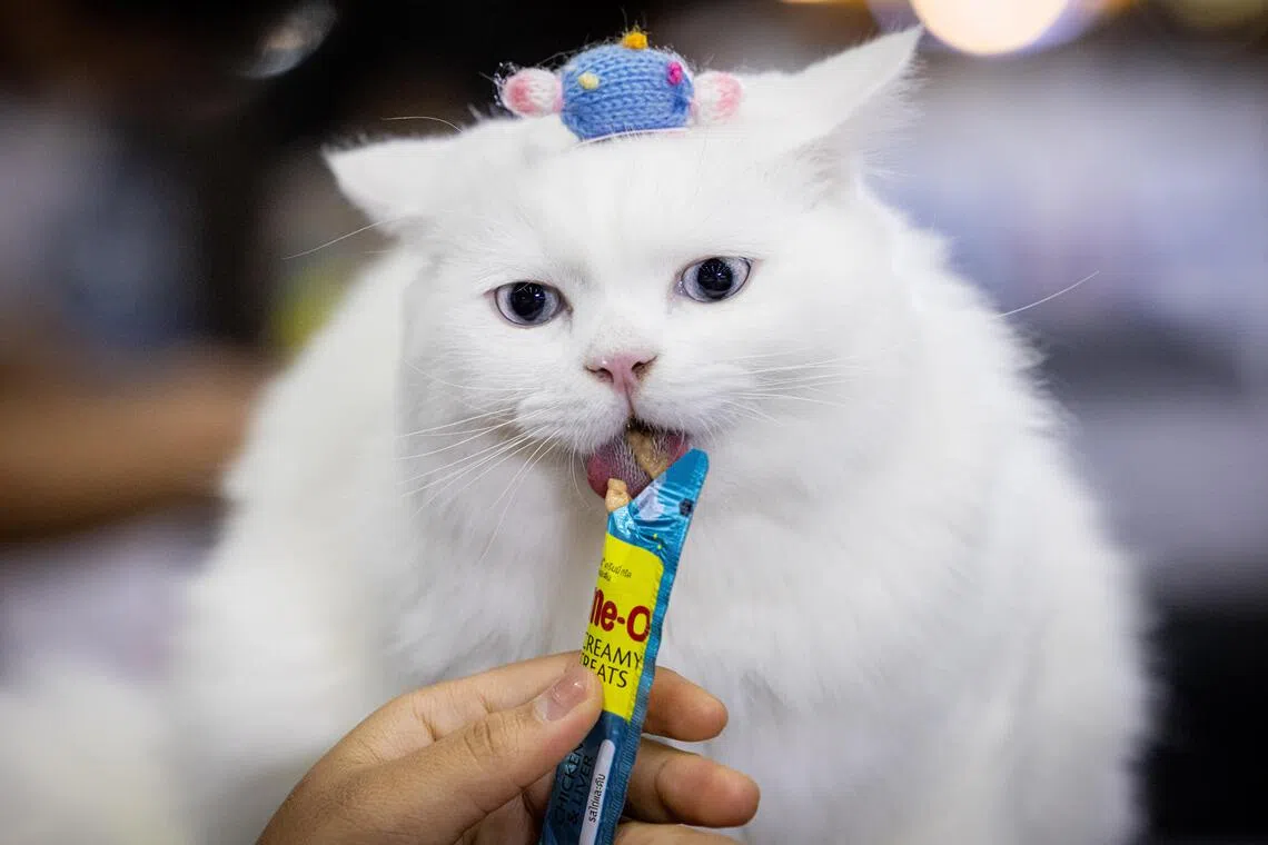 A cat taking part in a speed eating competition during the four-day Thailand International Pet Variety Exhibition in Bangkok in early October.