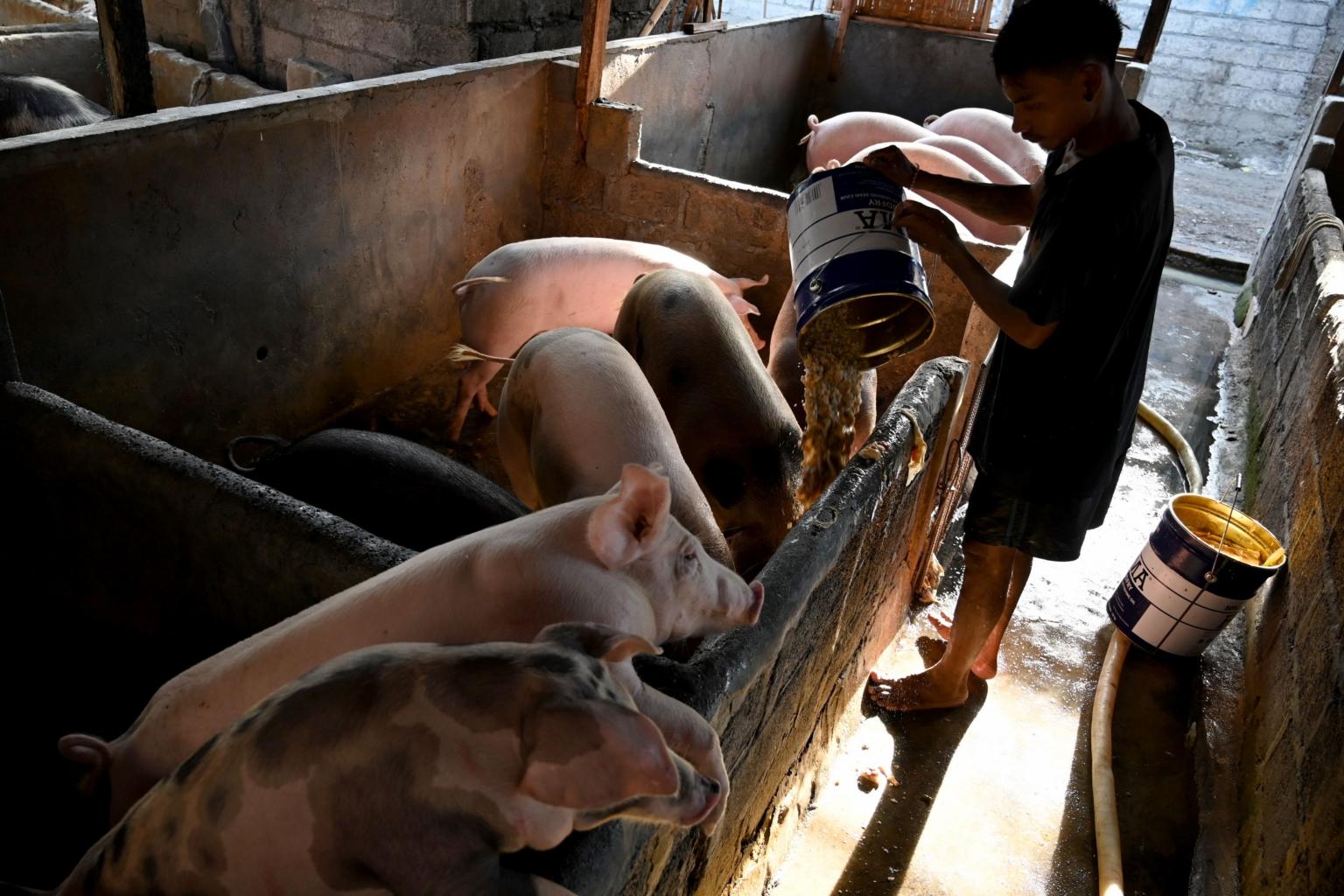 A worker feeding hogs on a pig farm in Denpasar, Indonesia, on Feb 5, 2020. North Sumatra's Bataks have raised pigs for many generations and the animals are utilised in various cultural ceremonies from birth to death,