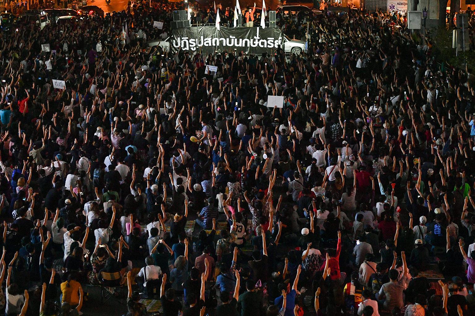 BANGKOK (REUTERS) - Thousands of protesters gathered in the Thai capital Bangkok on Wednesday (March 24) to demand reform of the monarchy and the release of jailed leaders, days after one of the most violent demonstrations since they began last year.