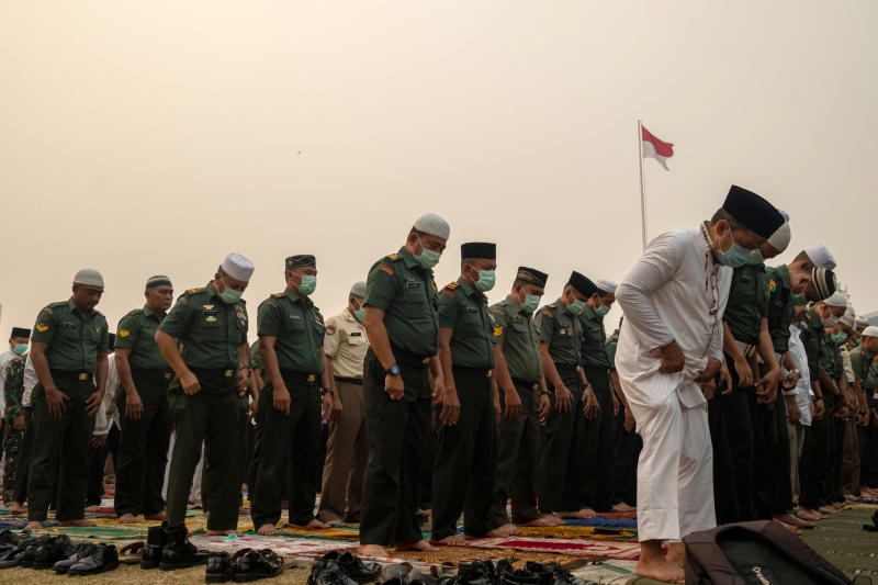 Thousands of people in Pekanbaru, capital of Riau province in Sumatra, Indonesia, held Islamic prayers for rain on Sept 11, 2019.
