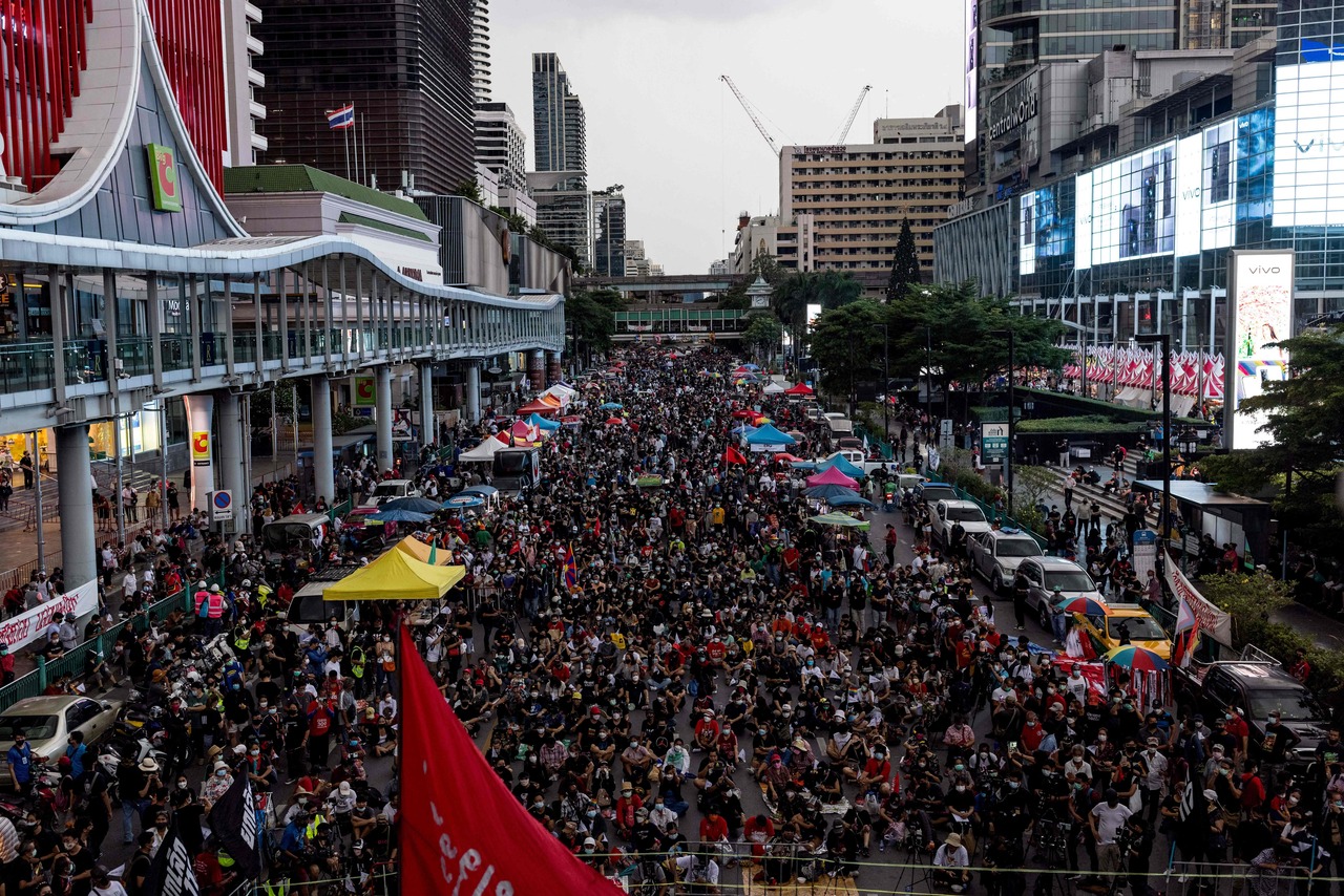 BANGKOK - Thousands of pro-democracy demonstrators flocked to downtown Bangkok on Sunday (Oct 31), defying Covid-19 curbs against mass gatherings and a plea by Prime Minister Prayut Chan-o-cha to refrain from street protests as Thailand prepares to welcome back more tourists.