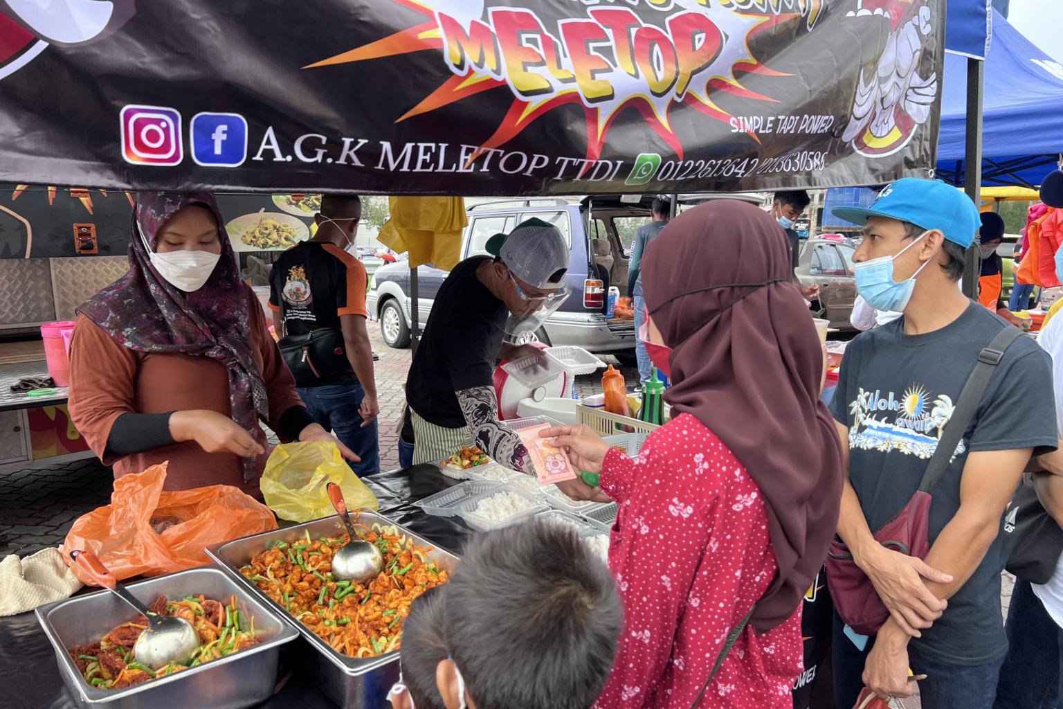 People buying food at a Ramadan bazaar in Selangor on April 4, 2022.