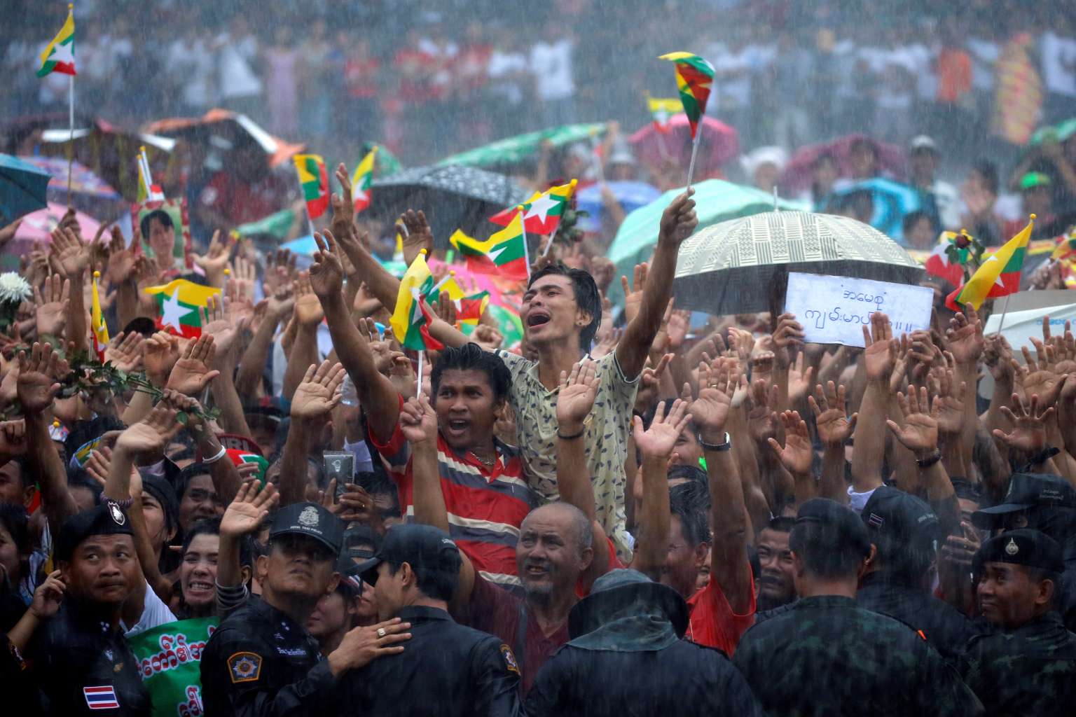 Some 500 policemen were used to control the agitated crowd, who had arrived with Myanmar flags and portraits of Ms Suu Kyi.