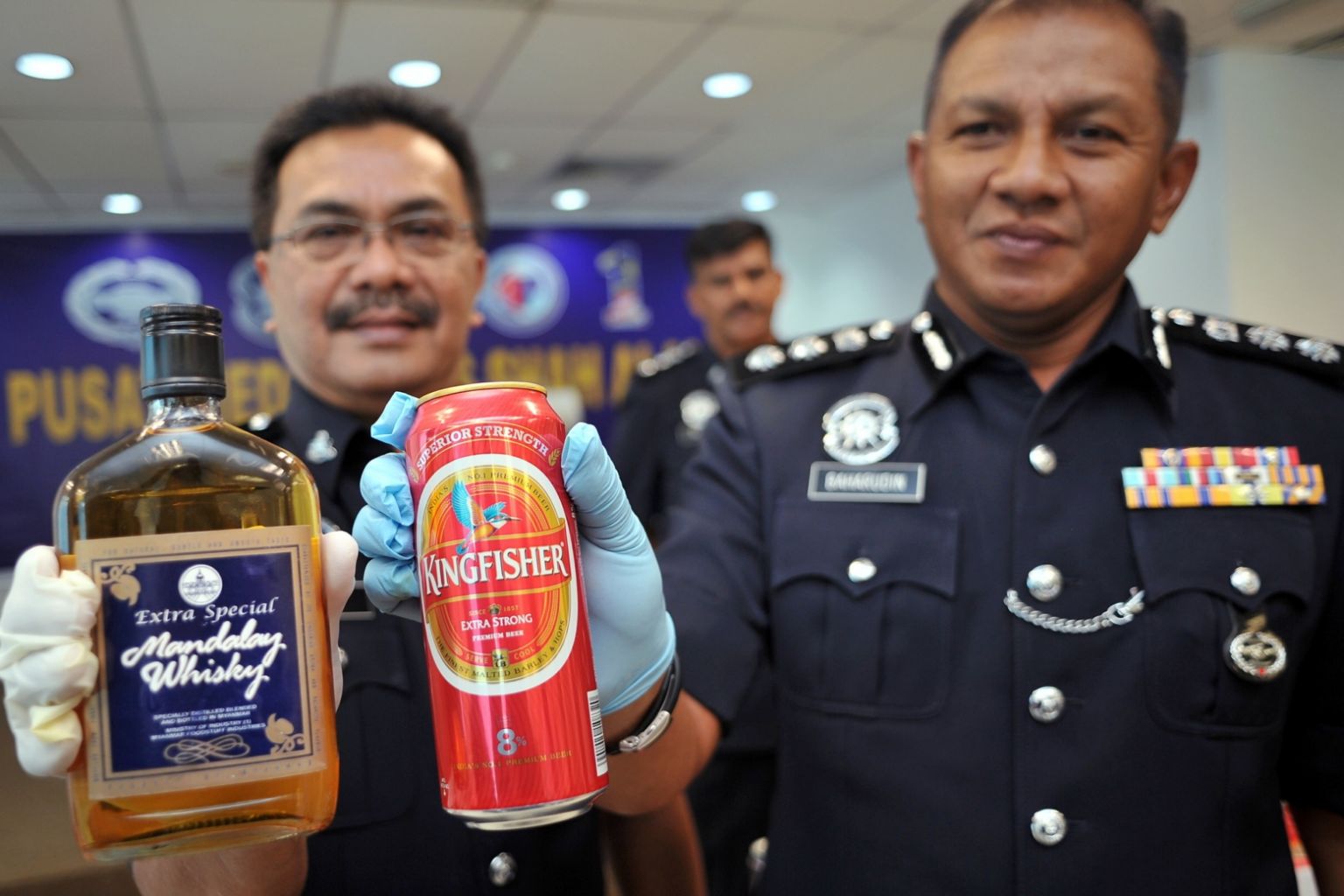 Malaysian police said that 1,021 bottles of alcoholic beverages and 1,695 beer cans were seized in 13 raids.