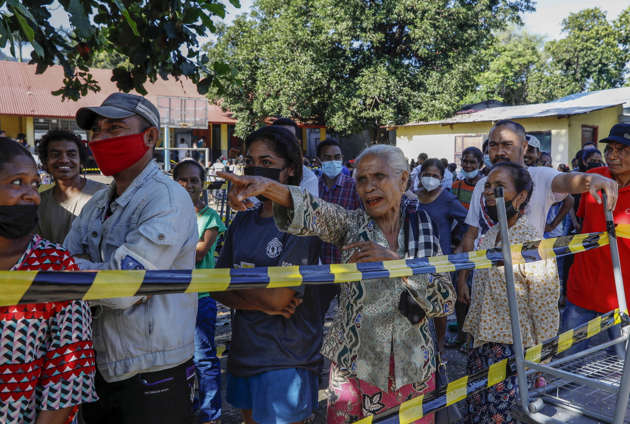 People waiting to cast their votes in Dili, Timor-Leste, on March 19, 2022.