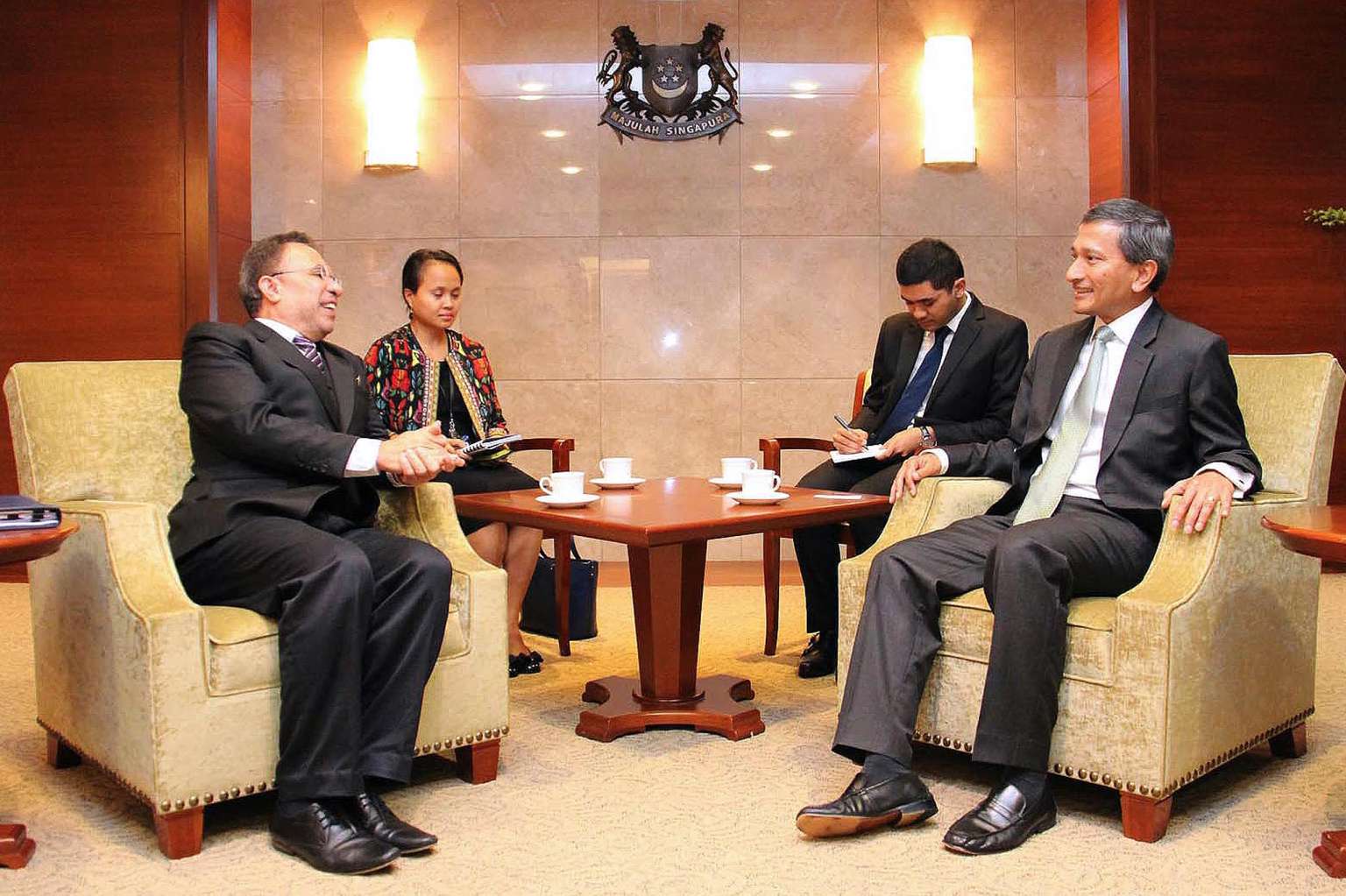 Timor Leste Foreign Minister Hernani Coelho calls on Singapore counterpart Vivian Balakrishnan