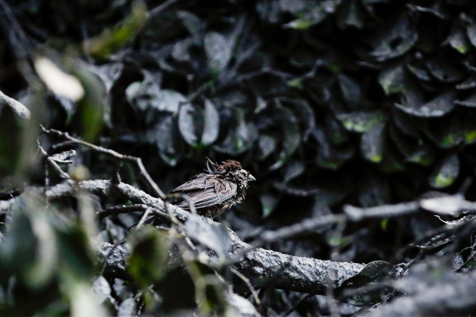A bird covered in ash after a volcano eruption in Talisay, Batangas, Philippines on Jan 13, 2020.