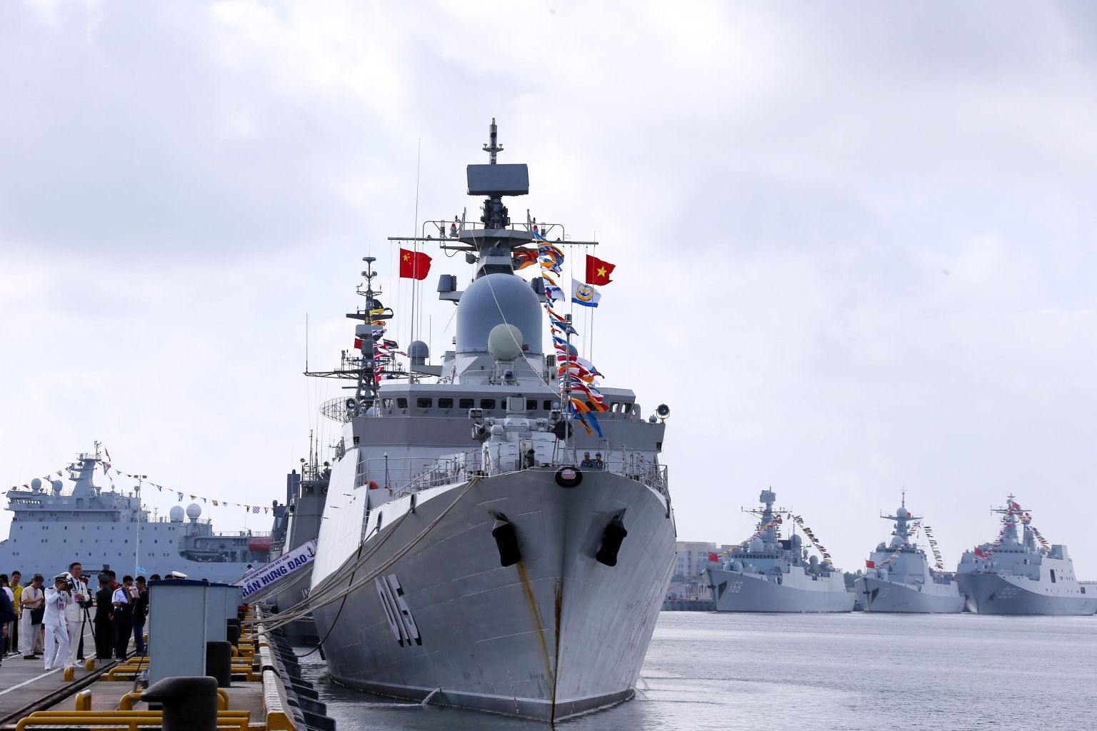 A Vietnamese navy ship (left) is seen near Chinese navy ships at a military port in Zhanjiang, in China's southern Guangdong province, on Oct 22, 2018.
