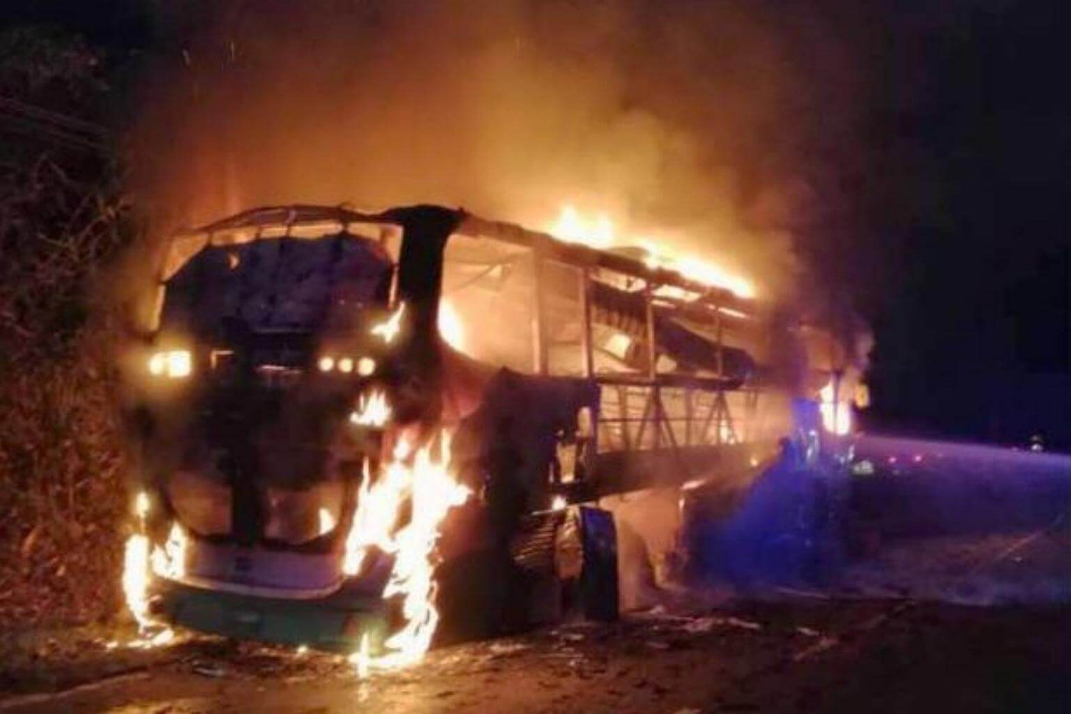 KOTA KINABALU (THE STAR/ASIA NEWS NETWORK) - A faulty braking system is believed to have triggered a fire that destroyed a tourist bus with 39 Chinese tourists on board along the Tamparuli-Ranau road on the Pan Borneo Highway, about 45km from the city on Sunday night (Feb 19).