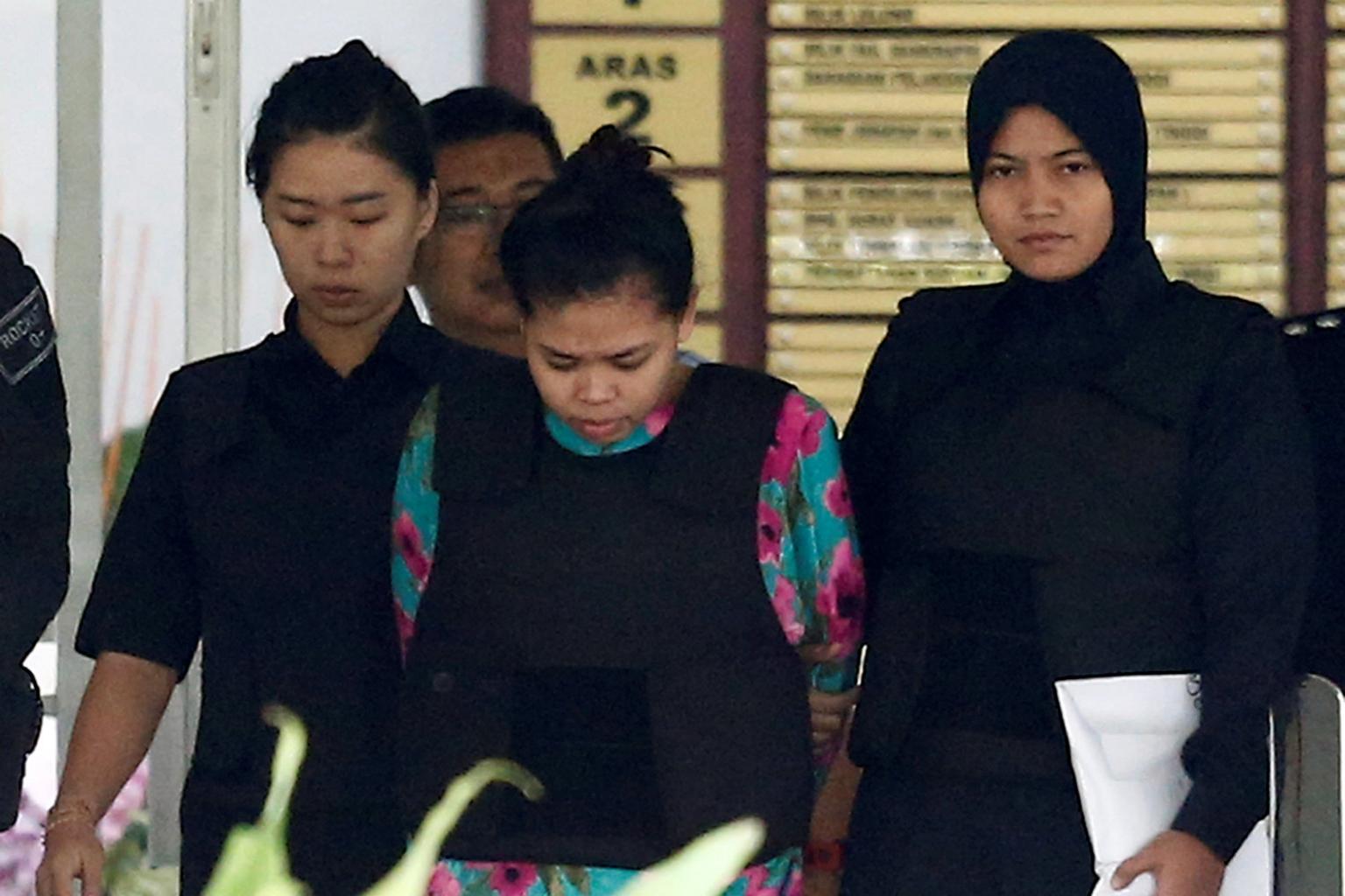Indonesian Siti Aisyah who is on trial for the killing of Kim Jong Nam, the estranged half-brother of North Korea's leader, is escorted as she leaves the Shah Alam High Court.