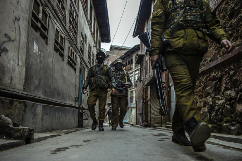 A police patrol in Srinagar, India, in the state of Kashmir.