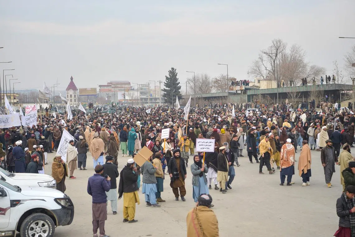 Thousands in Afghanistan protested in the capital Kabul on Friday to express anger at the burning of the Quran in Sweden on Jan 21.