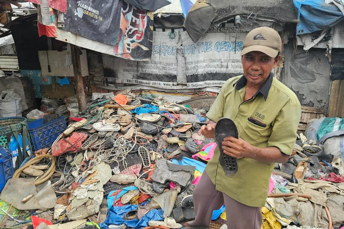He now starts work at the landfill at around 3am, collecting plastic waste, sorting it and selling it to recycling centres for 1,000 rupiah per kg.