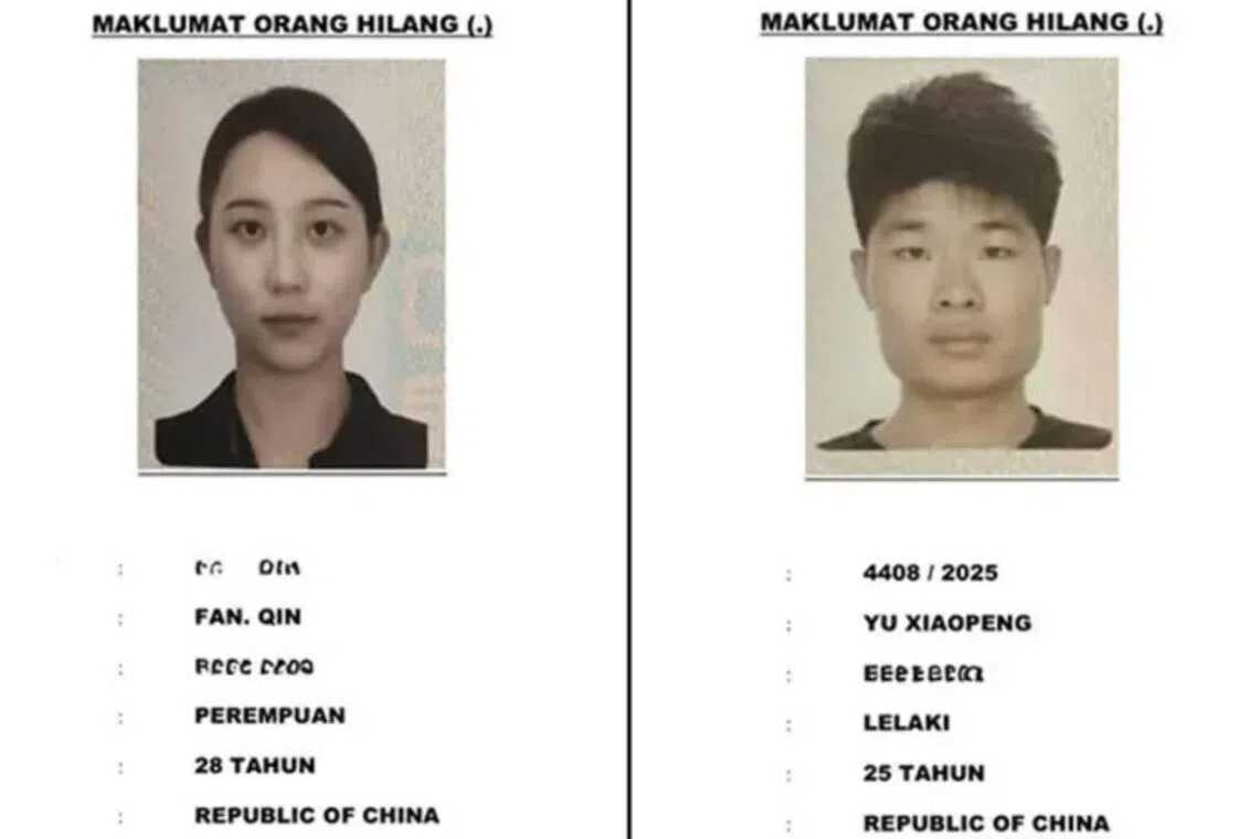 The pair, Mr Yu Xiaopeng, 25, and Ms Fan Qin, 28, had checked into a resort on Mantanani Island off Kota Belud on Oct 4 and were supposed to check out on Oct 5, according to Malaysian news outlet The Star.