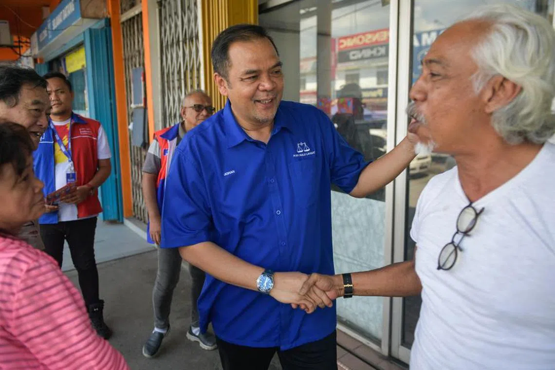 Umno’s Dusun Tua candidate Johan Abd Aziz meeting voters at Taman Suntex in Selangor on Aug 9.