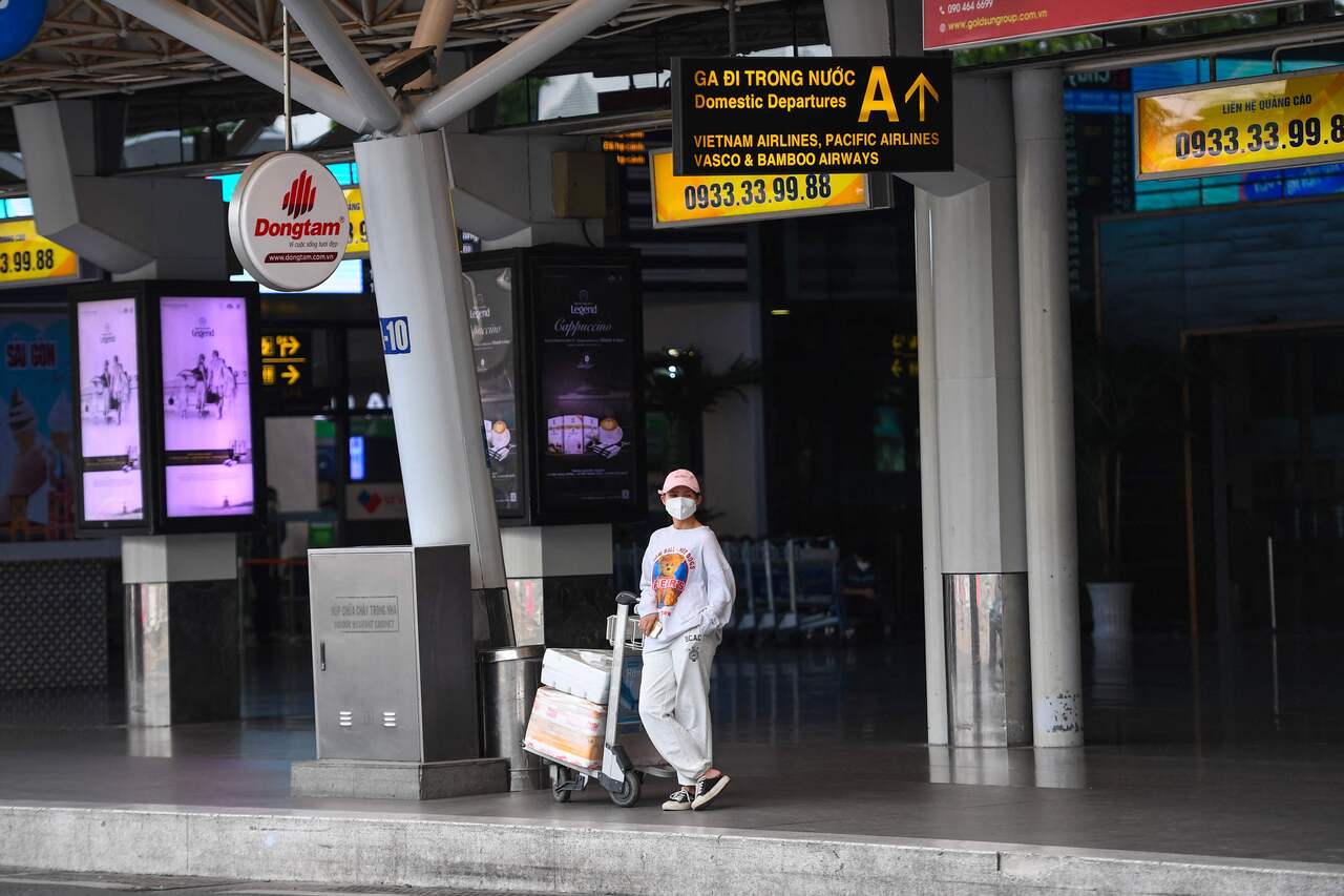 <p>A passenger waits for transport outside the arrivals terminal at Tan Son Nhat International Airport in Ho Chi Minh City on December 1, 2021. (Photo by Nhac NGUYEN / AFP)</p>