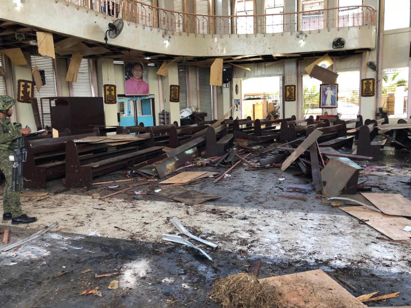 Debris inside the Cathedral of Our Lady of Mount Carmel where two bombs exploded in Jolo city, Sulu, Philippines on Jan 27, 2019.