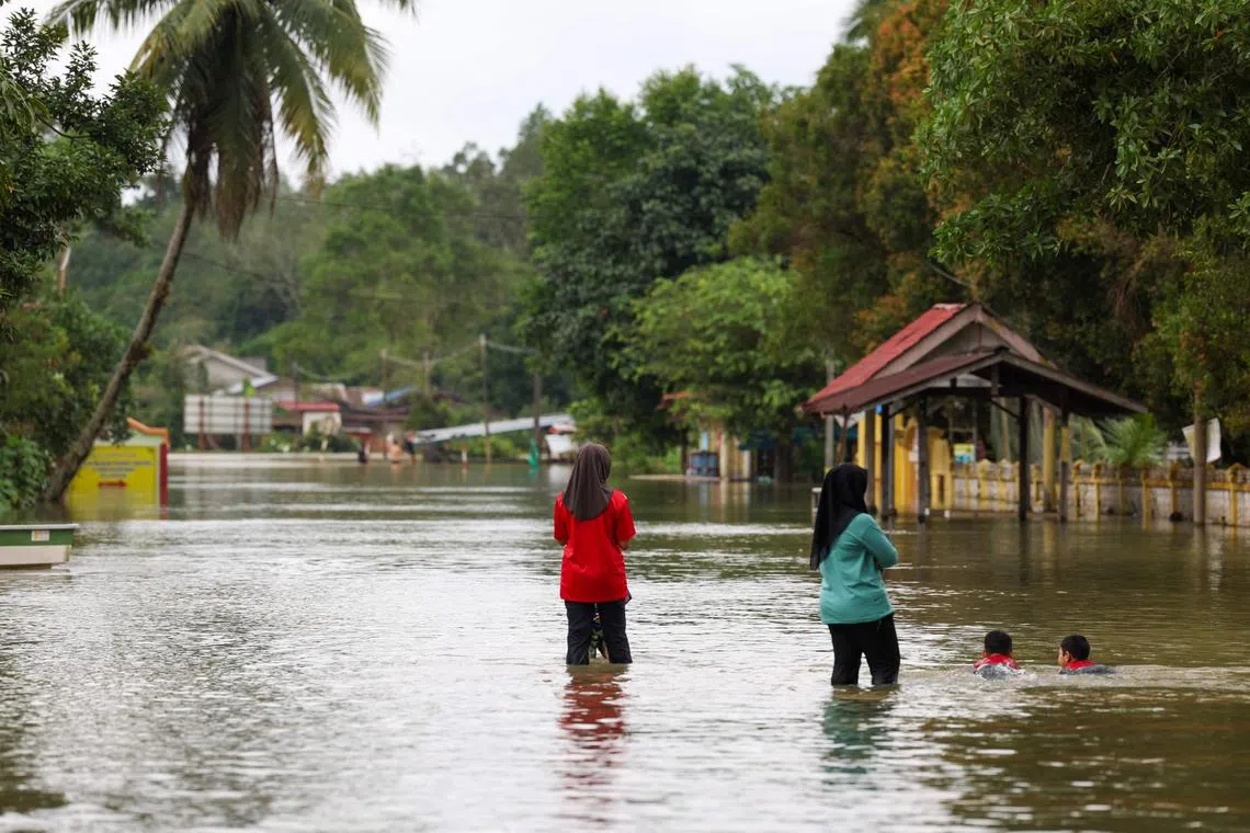 Residents make their way along a road submerged by flood waters in Pasir Mas in Malaysia’s northern Kelantan state, on Dec 21, 2022.