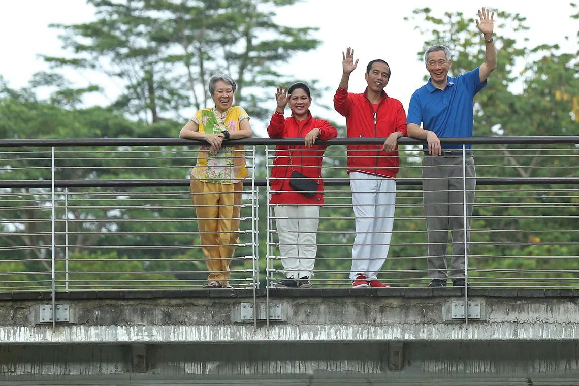 (From right) PM Lee, Mr Widodo, Indonesia’s First Lady Iriana and Mrs Lee at the Learning Forest in the Singapore Botanic Gardens on Sept 7, 2017.