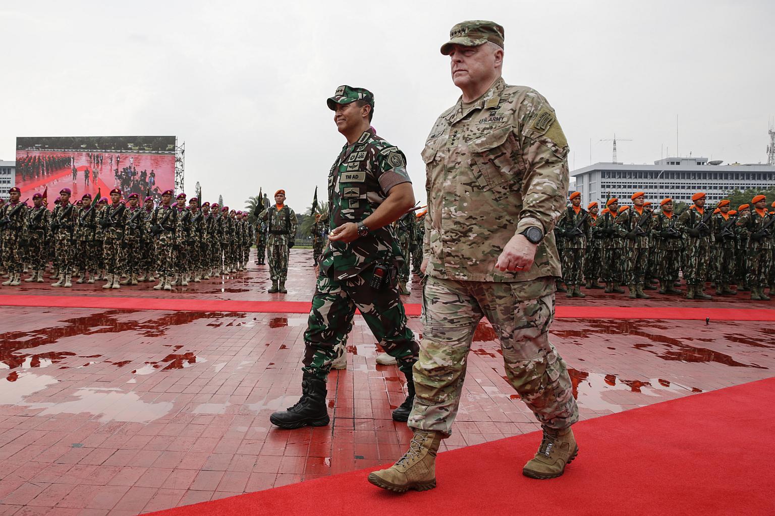 Indonesian General Andika Perkasa (left) with General Mark A. Milley, US chairman of the Joint Chiefs of Staff, in Jakarta on July 24, 2022.