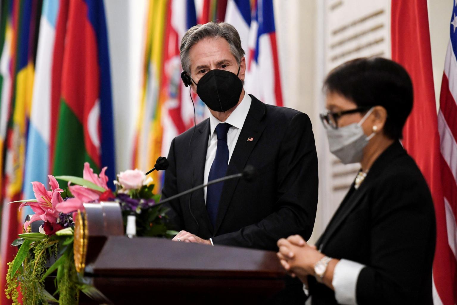 US Secretary of State Antony Blinken (left) and Indonesia's Foreign Minister Retno Marsudi speak in Jakarta, on Dec 14, 2021.