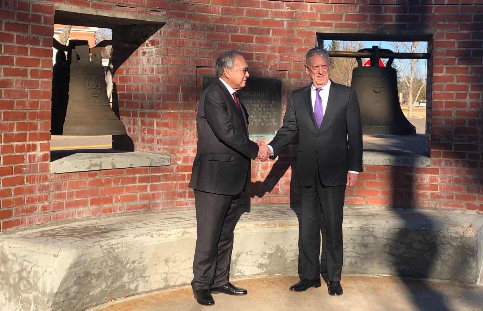 US Defence Secretary Jim Mattis, speaking at a ceremony at the F.E. Warren Air Force Base in Wyoming attended by the Philippine Ambassador to the US Jose Manuel Romualdez, said the bells' return to the Philippines would "smooth the bonds that were tested but never broken by war".