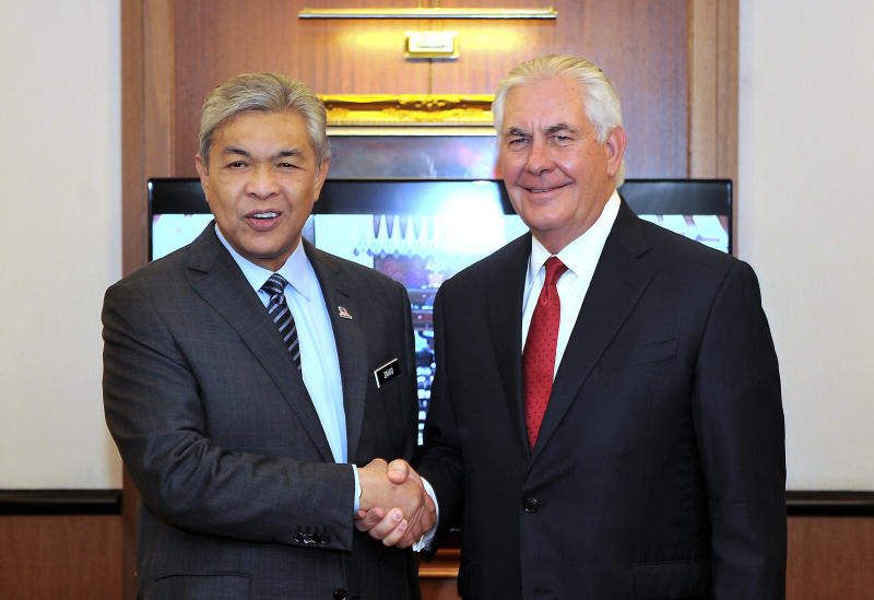 US Secretary of State Rex Tillerson met Malaysia's Deputy Prime Minister Datuk Seri Dr Ahmad Zahid Hamidi in Kuala Lumpur for talks as he wrapped up his two-day inaugural visit to Malaysia.