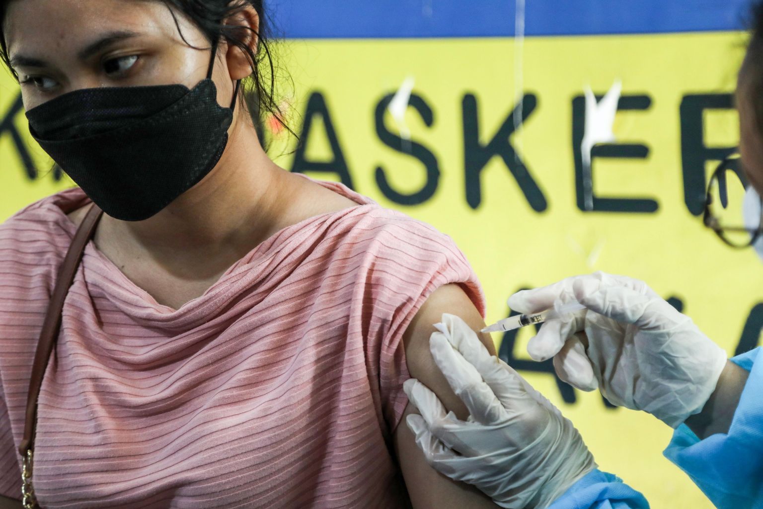 A woman receives a dose of coronavirus vaccine in Medan, North Sumatra, Indonesia, on July 2, 2021.