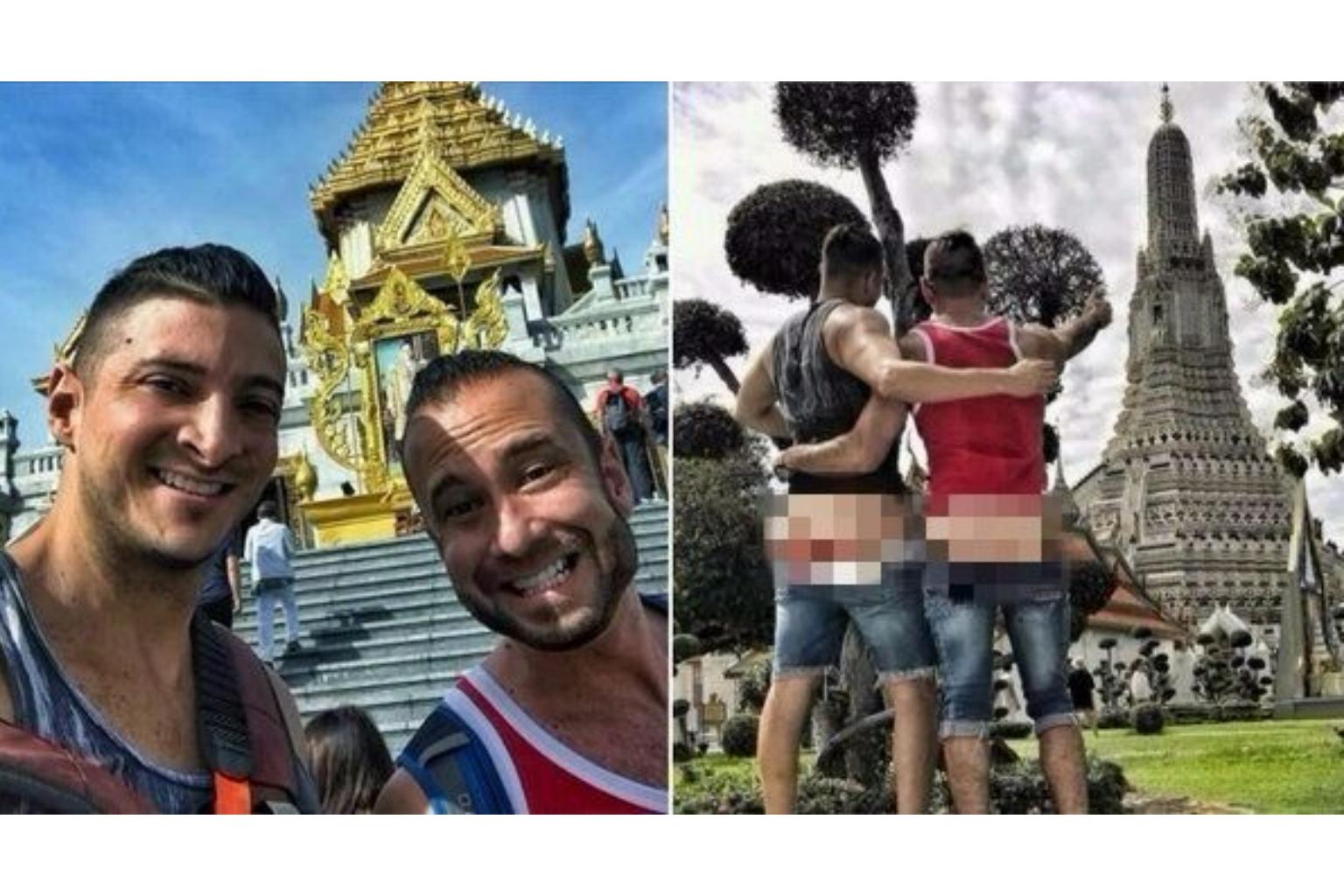The pair, Joseph and Travis Dasilva, both 38, uploaded pictures on November 24 of their bared backsides at Wat Arun (The Temple of Dawn) to Instagram.