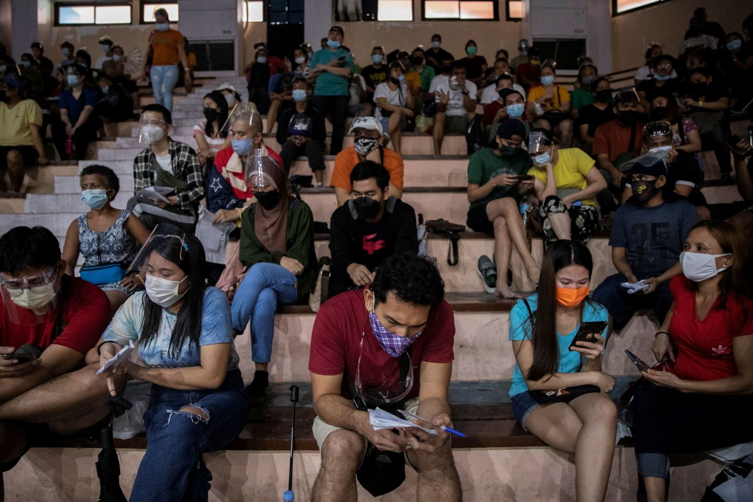 Filipinos queue for free Covid-19 vaccinations at a sports complex in Manila, on July 21, 2021.