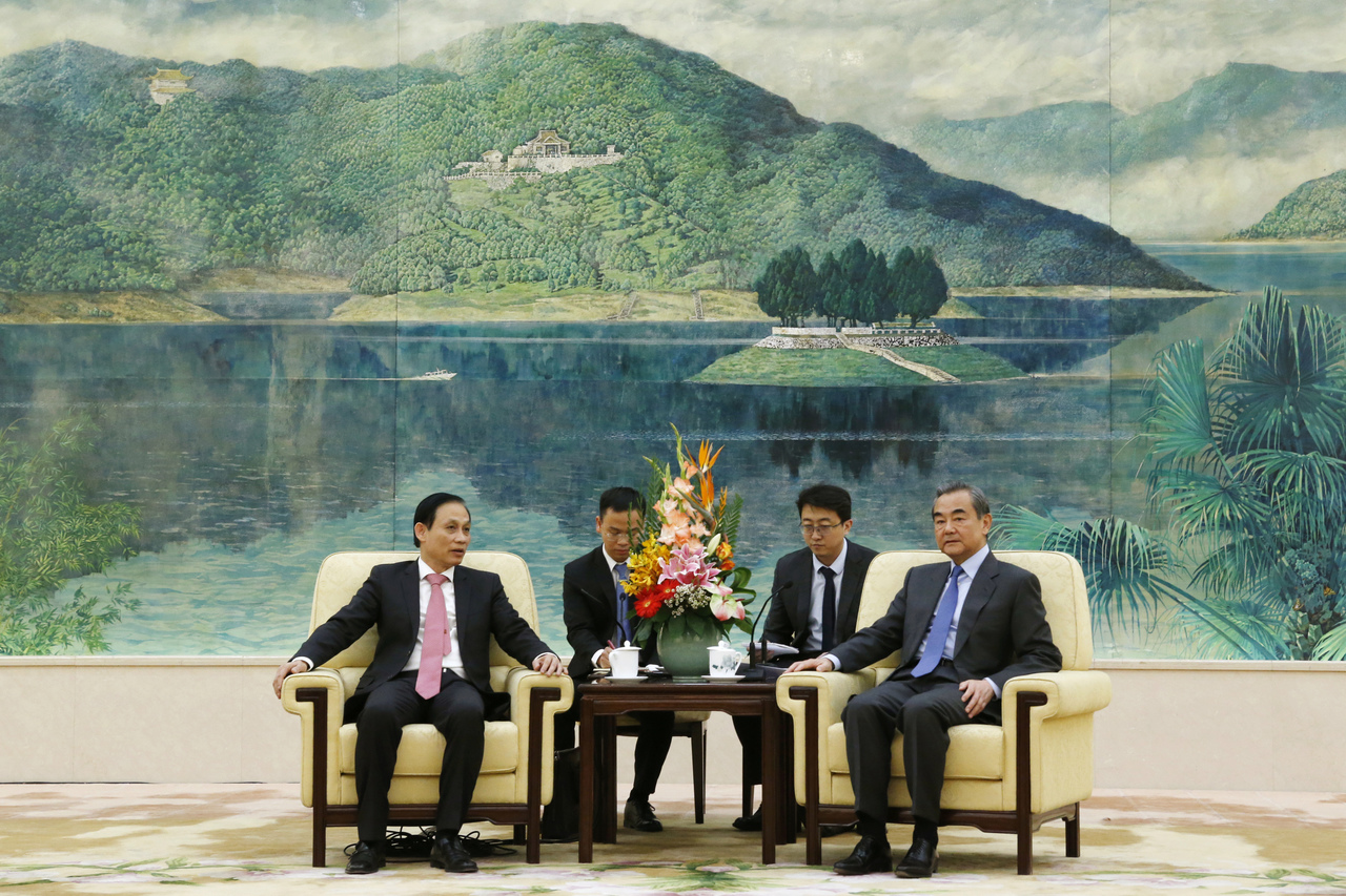 Vietnam's Deputy Foreign Minister Le Hoai Trung (left) meets China's Foreign Minister Wang Yi at the Great Hall of the People in Beijing on Nov 27, 2019.