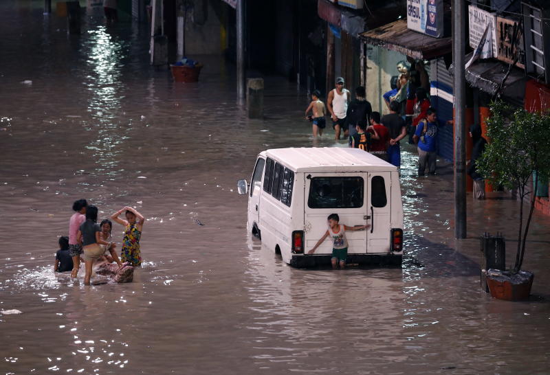 Flooded streets in Las Pinas city, south of Manila, Phiippines, on July 17, 2018, after Tropical Storm Son Tinh made landfall.