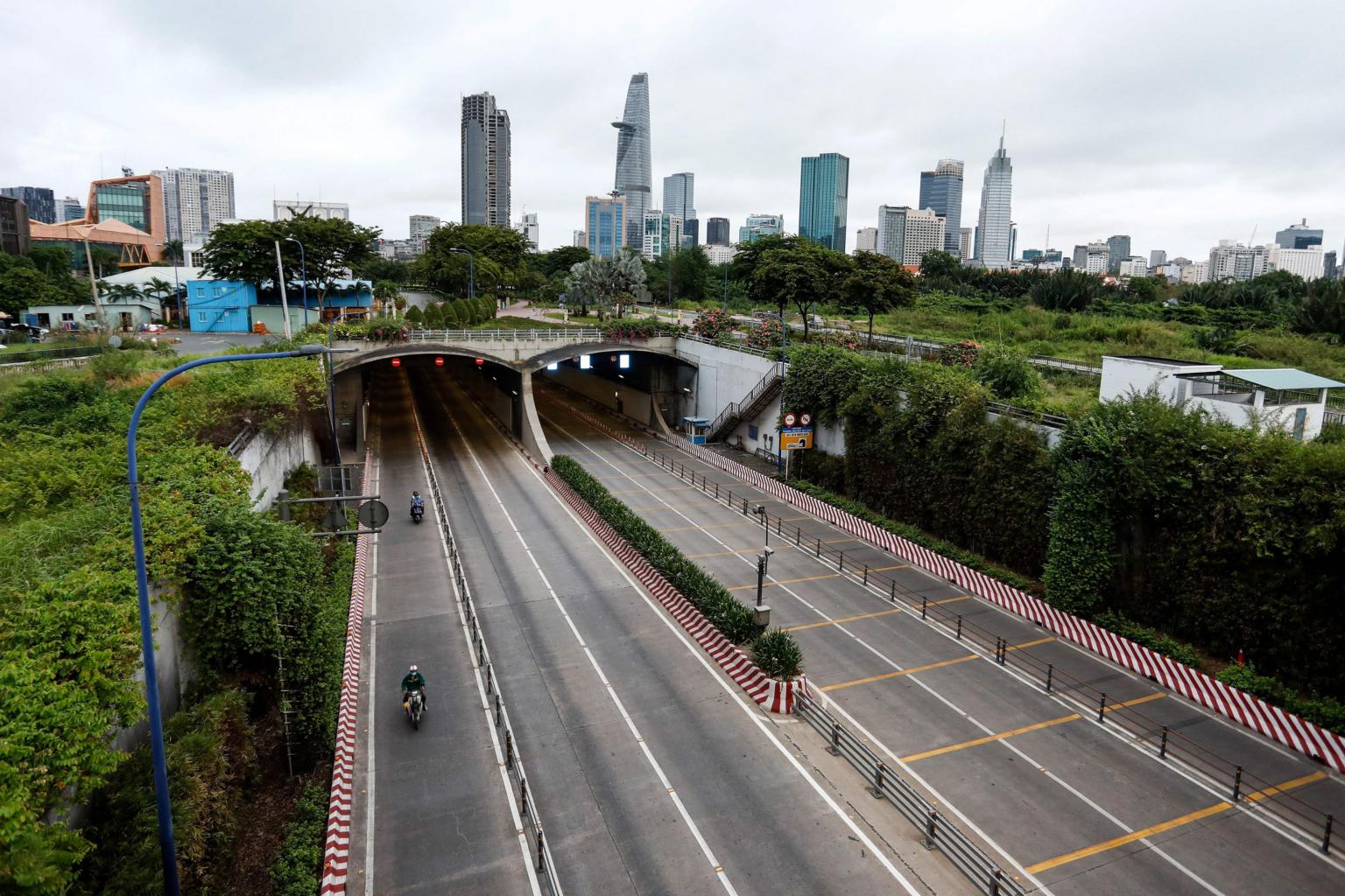 A deserted motorway in Ho Chi Minh City on the first day of the lockdown on July 9, 2021.