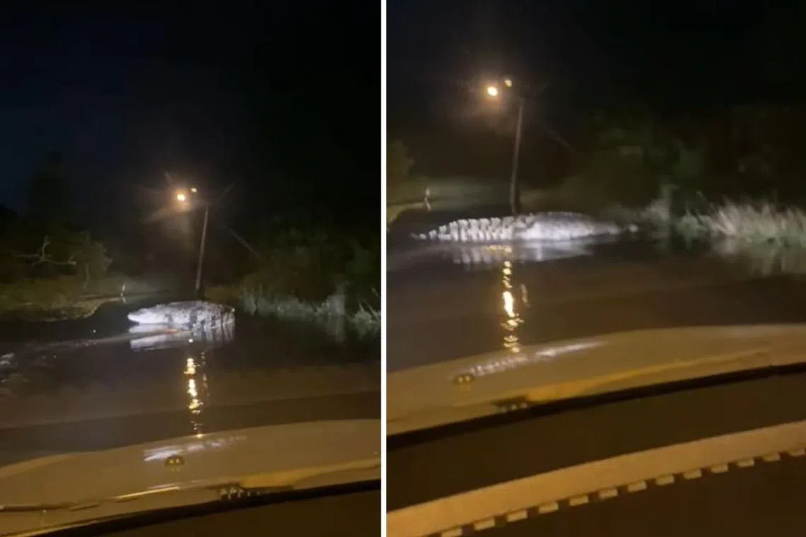 Villager spots large crocodile on flooded road in Pahang, Malaysia