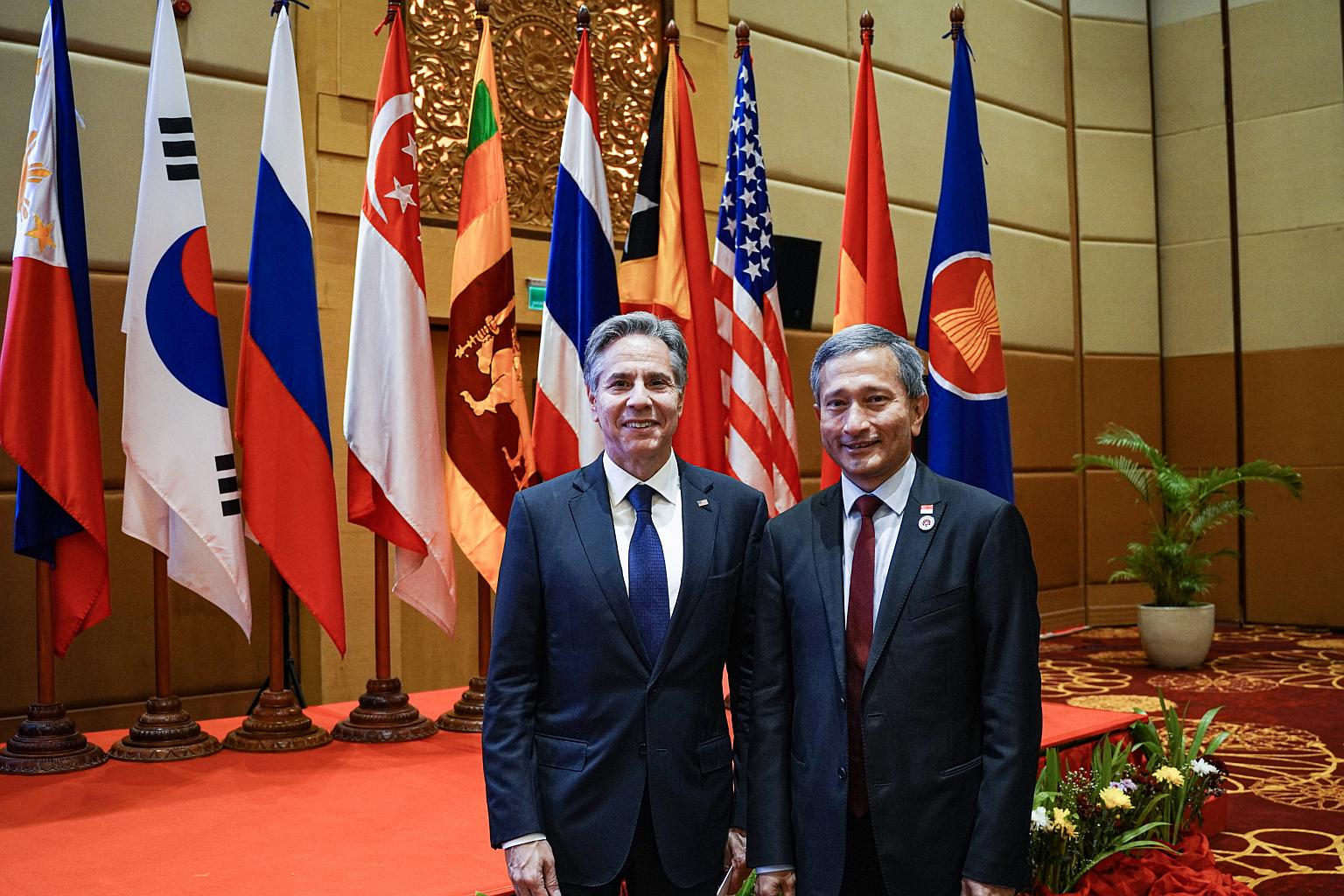 US Secretary of State Antony Blinken (left) and Singapore Foreign Minister Vivian Balakrishnan in Phnom Penh on Aug 5, 2022.
