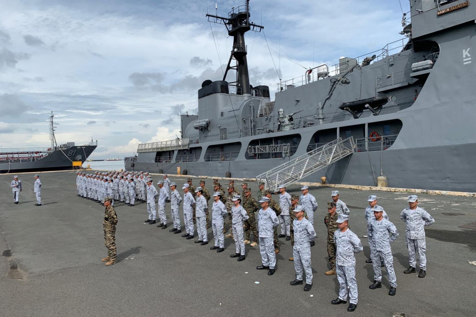 Filipino navy personnel stand in formation during a send-off ceremony in Manila, Philippines, on Aug 29, 2019.