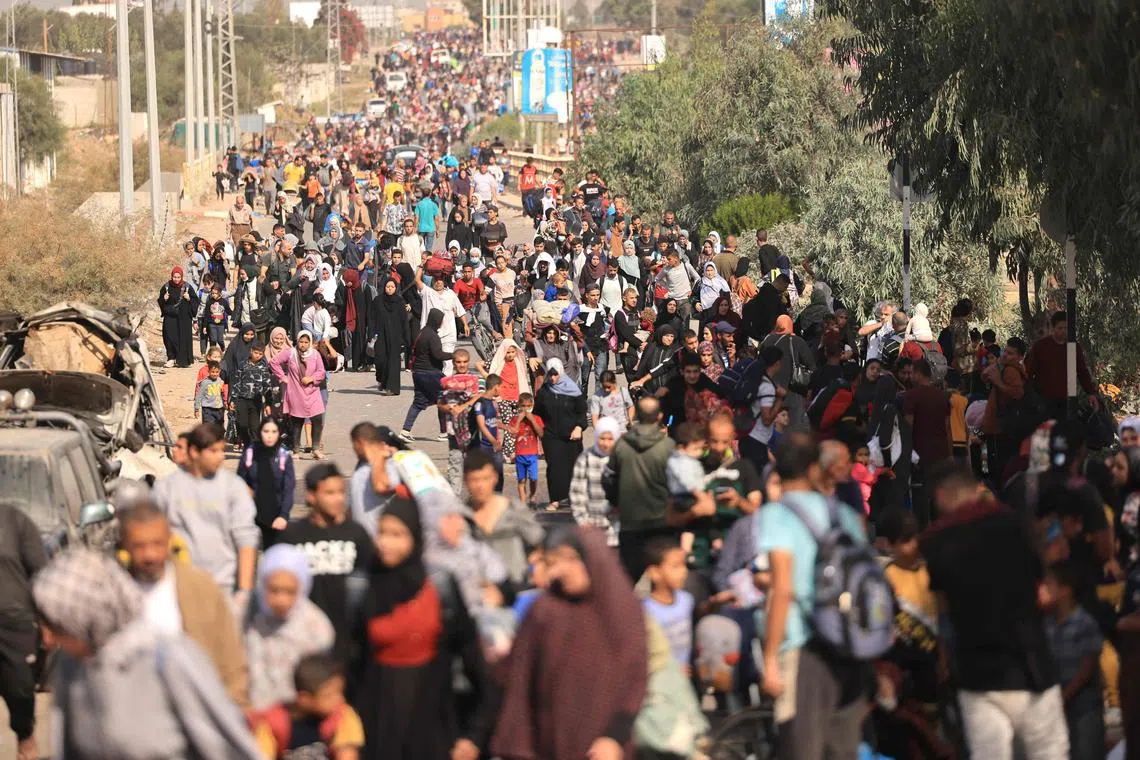 Palestinians families fleeing Gaza City and other parts of northern Gaza along a highway to the southern parts of the Gaza strip on Nov 9.