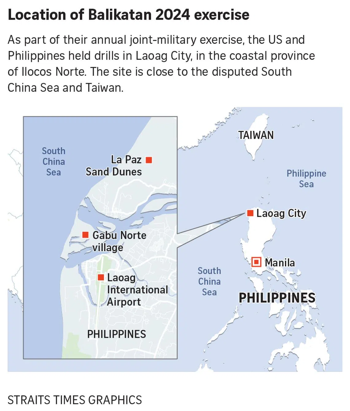 The US and Philippine militaries carried out two exercises in Ilocos Norte: the counter-landing live fire drills on May 6 and a maritime strike exercise on May 8, in which they used high-powered weapons systems to sink a China-made oil tanker.