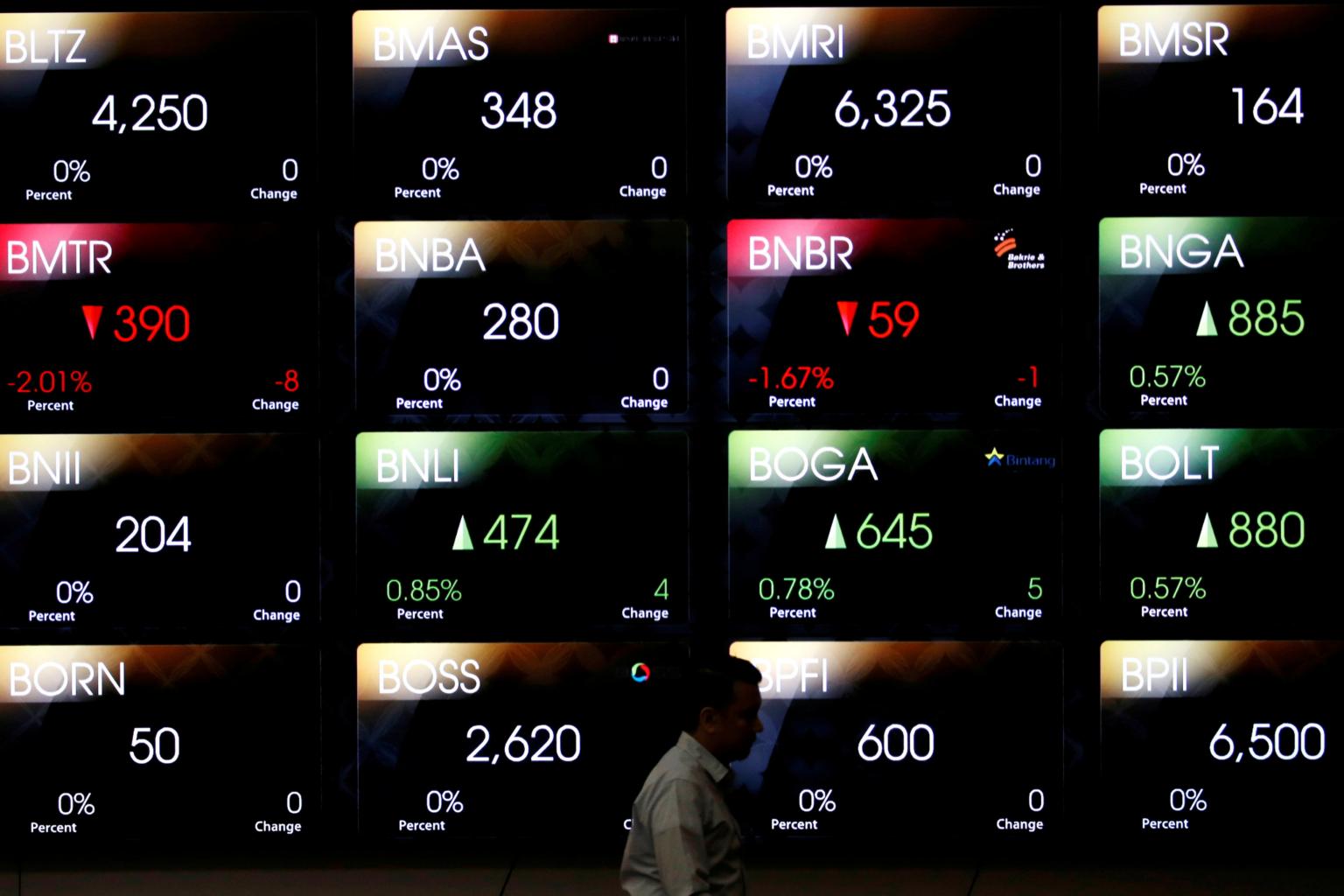 A man walks past a screen at the Indonesia Stock Exchange building in Jakarta, Indonesia, on Sept 6, 2018.