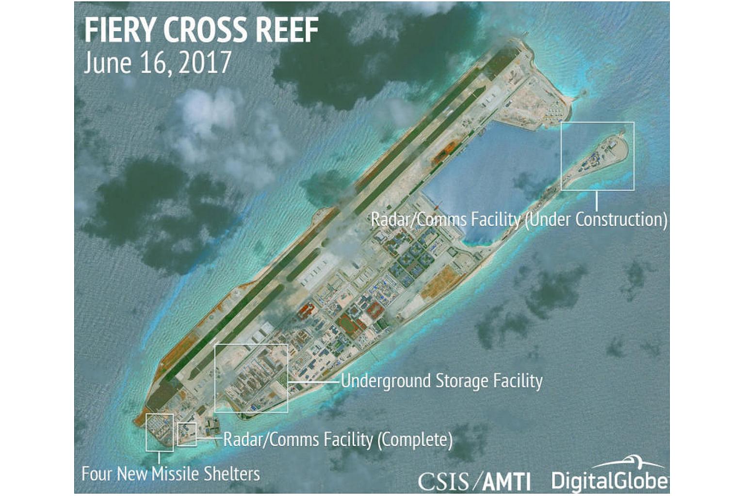 Construction is shown on Fiery Cross Reef in the Spratlys in this satellite image taken on June 16, 2017.