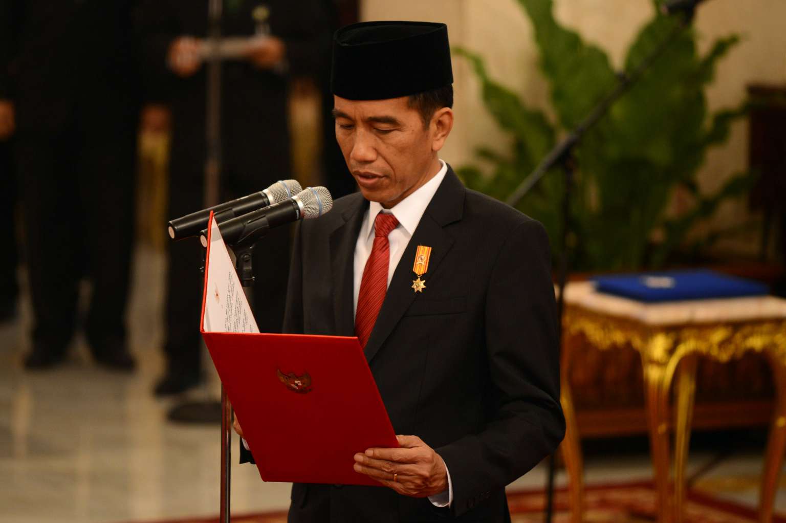 Indonesian President Joko Widodo swears into office the six newly appointed ministers during official ceremony at the presidential palace in Jakarta on Aug 12, 2015.