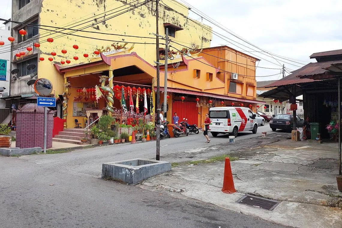 At a street corner, gleaming green dragons perch in front and on the roof of a bright orange building – the only temple in this kampung baru cina or Chinese new village of around 4,000 residents, mainly Chinese, with a few Malays and Indonesian permanent residents who migrated there to work at the factories.
