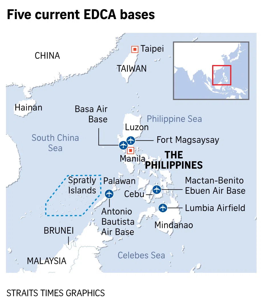 The two sides also decided to substantially complete projects at the five existing military sites, including another base in Palawan province, near the disputed sea. The US has allocated over US$82 million (S$108 million) towards infrastructure investments in the five sites.