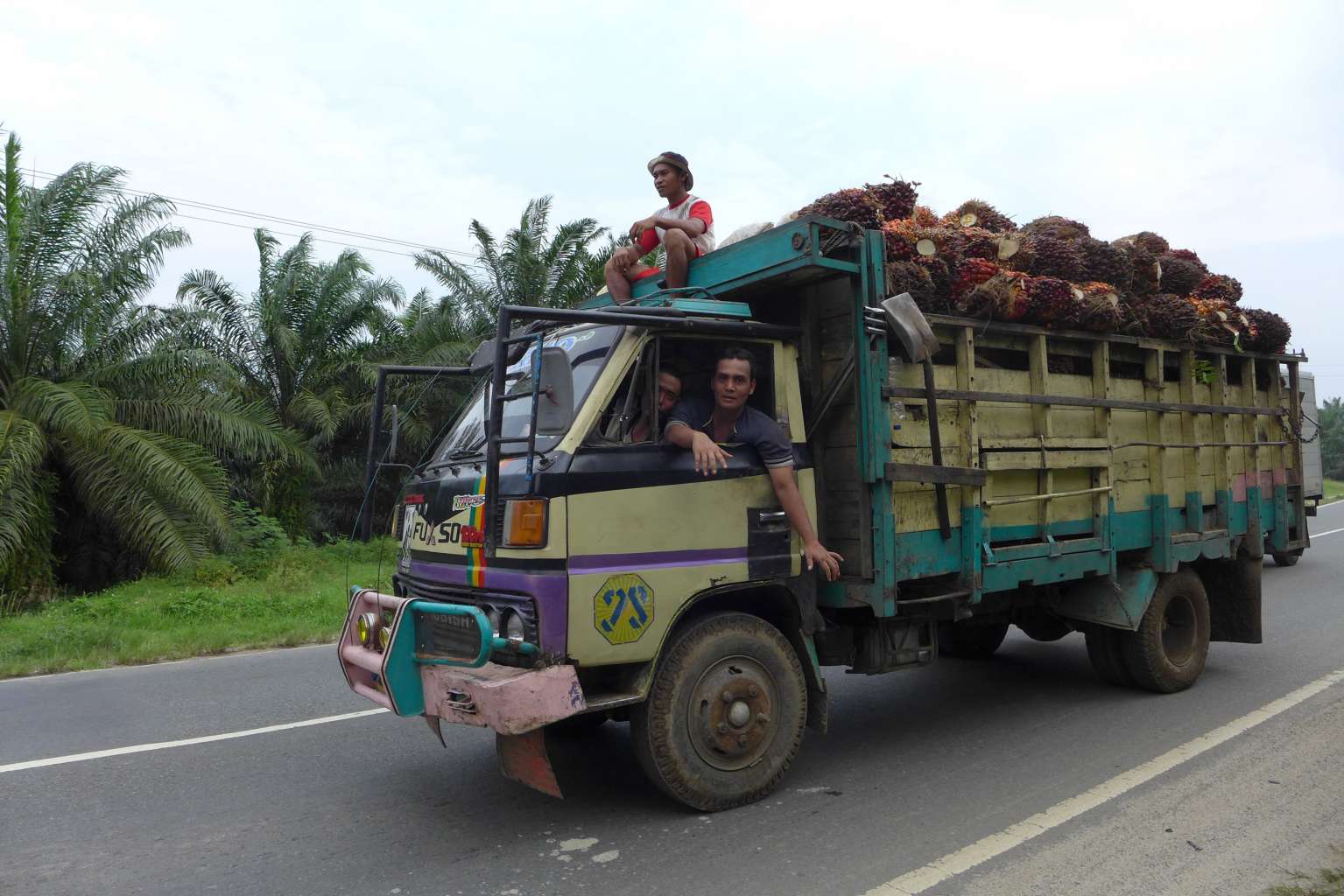 A truck transporting palm fruit bunches to a mill near Medan in North Sumatra in this file photo.