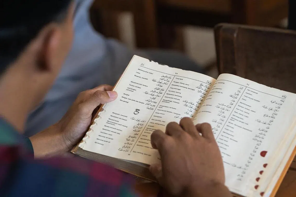 A student revises his Arabic during classes at Pesantren Darusy Syahadah. Besides learning Arabic, students here also study Islamic jurisprudence, or fiqh, as well as memorise the Quran as part of their curriculum.