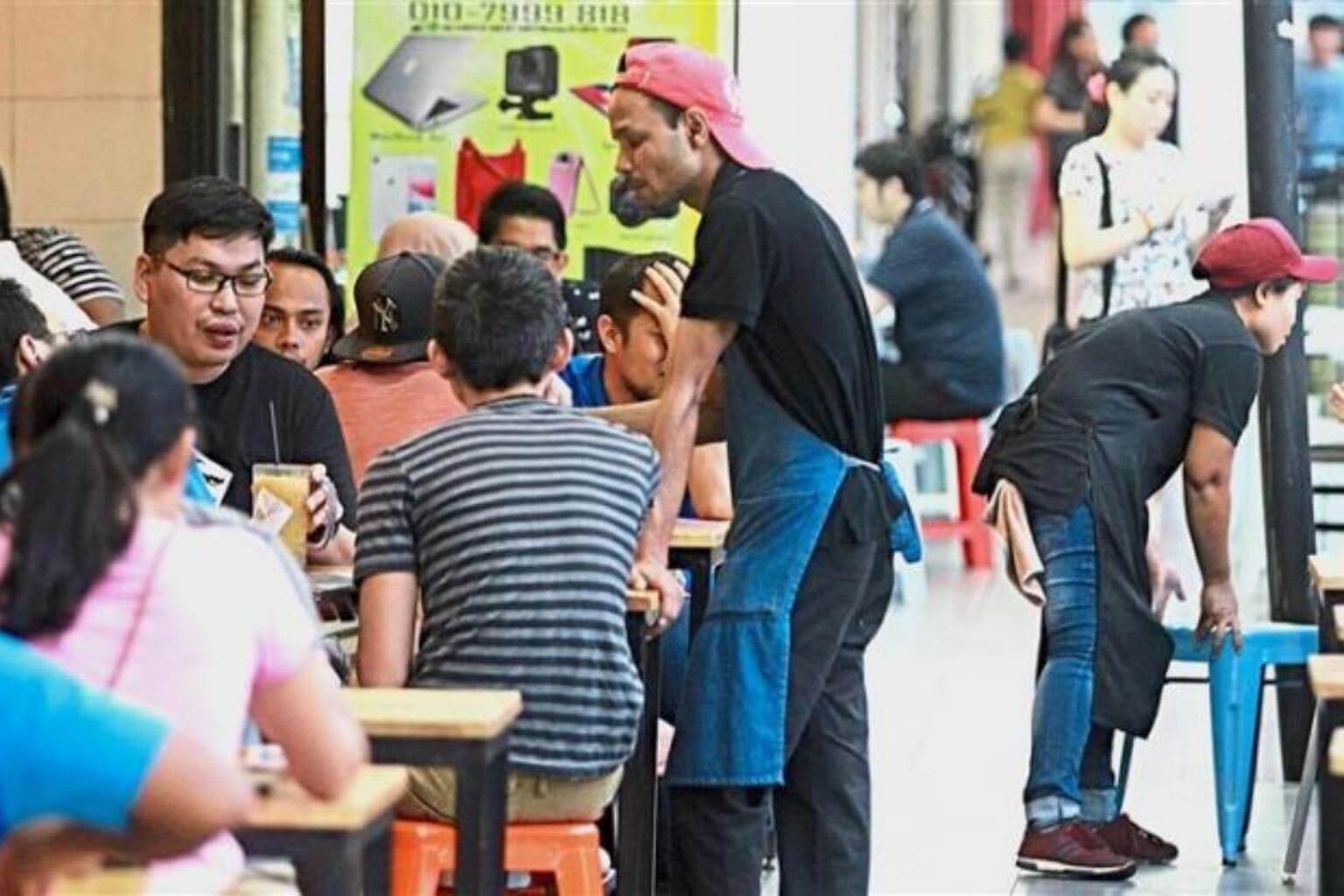 Workers serving customers at an eatery in Petaling Jaya, Malaysia.
