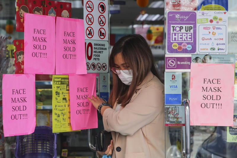 A woman leaving a pharmacy in Kuala Lumpur, Malaysia, on Jan 30, 2020. Police have arrested six people for spreading misinformation about the novel coronavirus, a Malaysian Communications and Multimedia statement said.