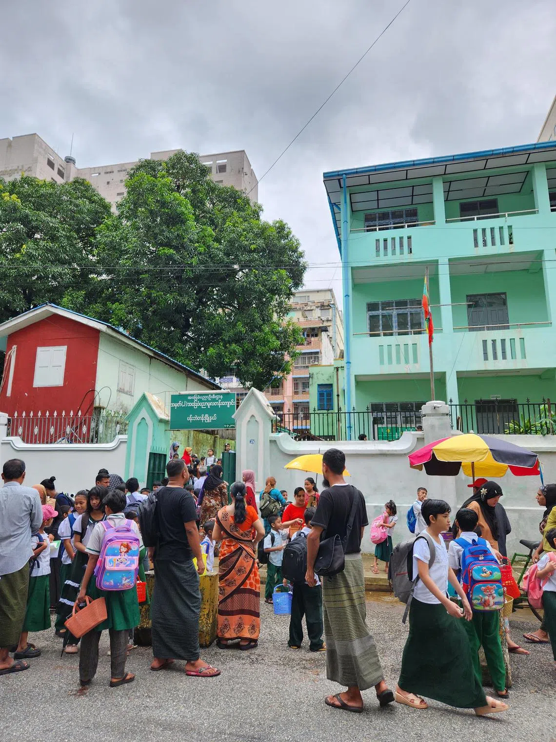 Students streaming out of a Yangon school on a weekday in June 2024.