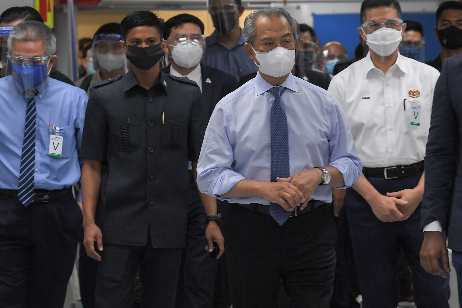 Prime Minister Muhyiddin Yassin (centre) attending a Covid-19 immunisation programme in Kuala Lumpur earlier this month. He had said he would dissolve Parliament and call an election once the pandemic is under control.