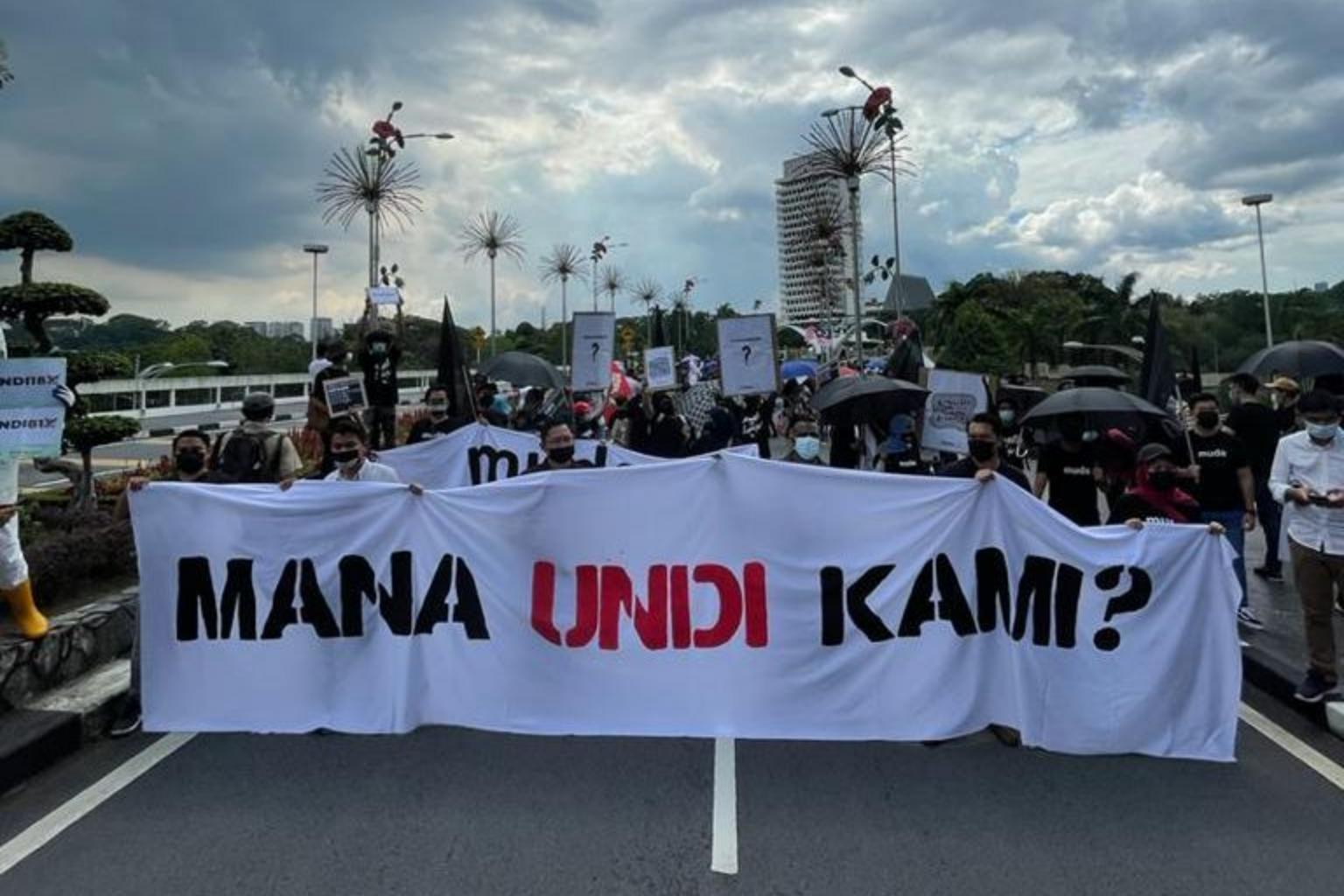 Led by youth leaders from Undi18, a movement which promotes the implementation of the new voting rule, the protesters held placards and shouted slogans.